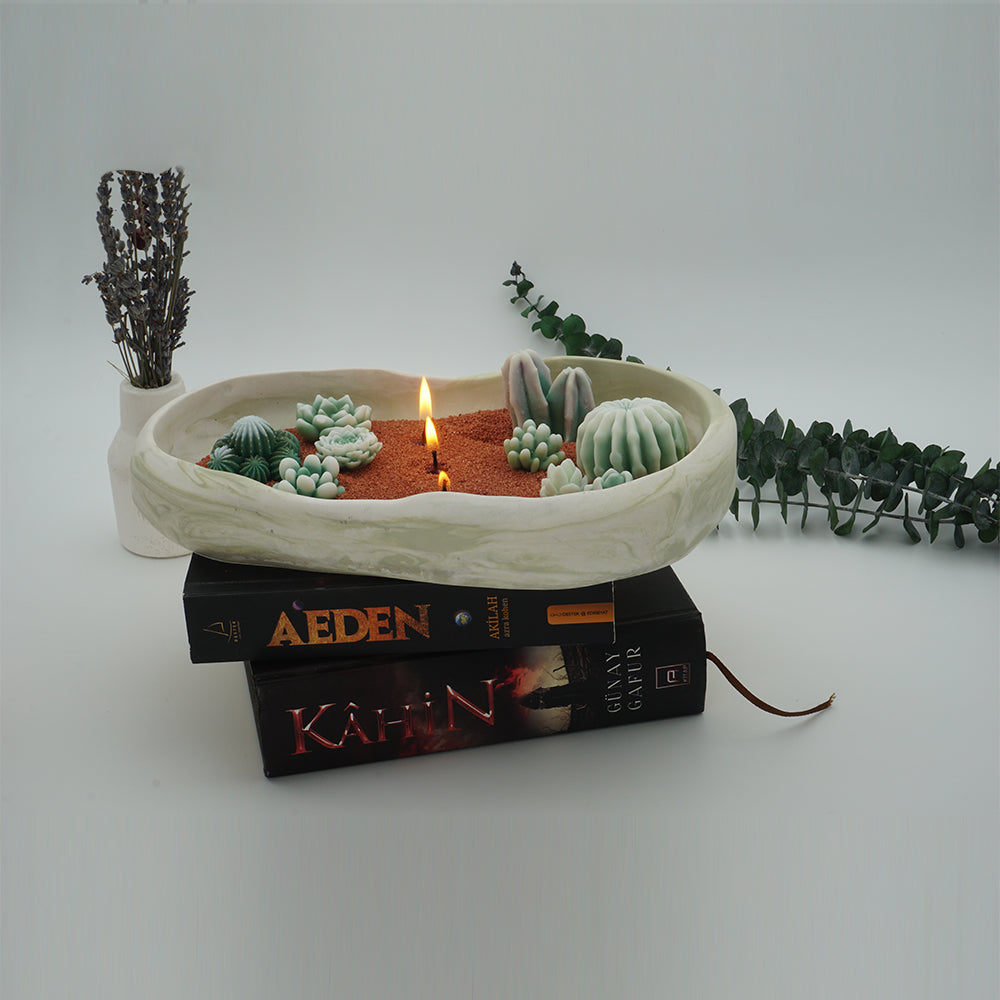 🎁Paket içeriği : 1 Adet Büyük boy Çanak Kase,9 adet kaktüs mum,3 fitil ve toz mum.