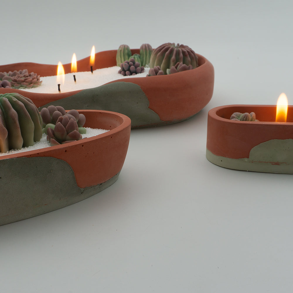 El yapımı Terracota Kaktüs Çanak Kase Mumluk 3 Boy Set